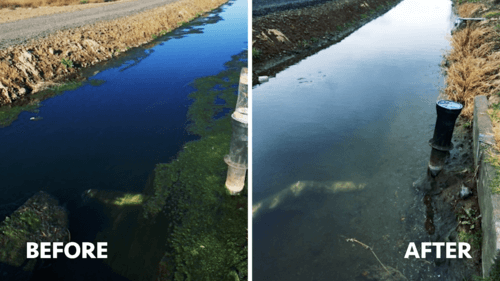 Captain XTR is widely used in canal systems. This is applied to canals with flowing water, and it’s able to keep that water moving for irrigation uses or for flood control. Captain XTR has many usages in these canal systems and can keep those thick, mat forming algae or macro-algae down in the canals and able to keep those waters moving.