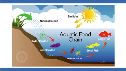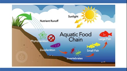 Let’s discuss three main reasons why cyanobacteria are not good for a healthy fisheries program. The first is food chain impacts, next is toxin production, and finally, habitat alterations.