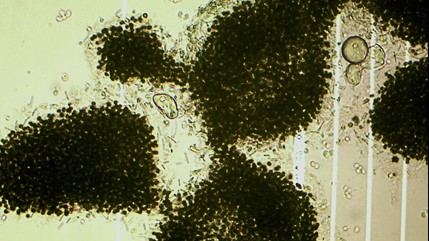 Cyanobacteria form big, thick mats and colonies and mucilage, and it’s very difficult for this material to move up the food chain. Invertebrates and zooplankton have a hard time even consuming them.