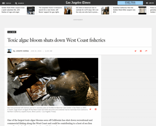 Toxic blooms of pseudo nitzschia have shut down all sorts of shellfish industries. A couple years ago in the western United States, the shellfish industry was shut down from Mexico to Alaska because of a massive bloom of pseudo nitzschia producing this toxin.