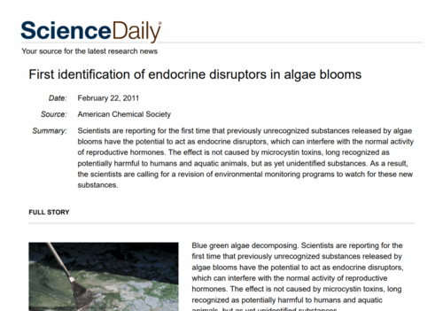 A few years ago in Toledo, Oh., the drinking water was shut down because of microcystins present in that system.