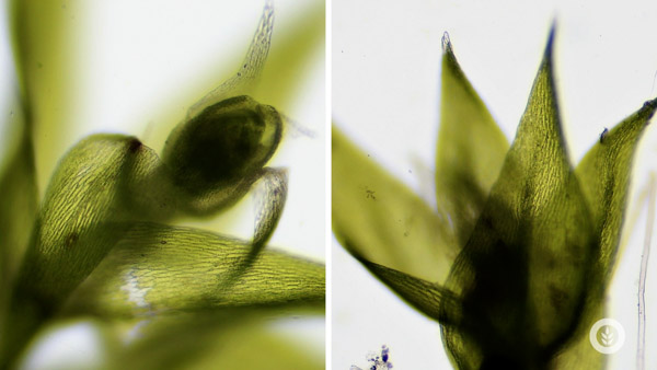 Many people may call algal mats or scums on their pond "moss", but moss is very different than algae. It's actually a plant in the phyla Bryophyta, so it lacks vascular tissue and stays pretty low-growing. It has cool alternate leaf blades with triangular pointed leaf heads. Many don't have true roots, but they can anchor with structures known as rhizoids.