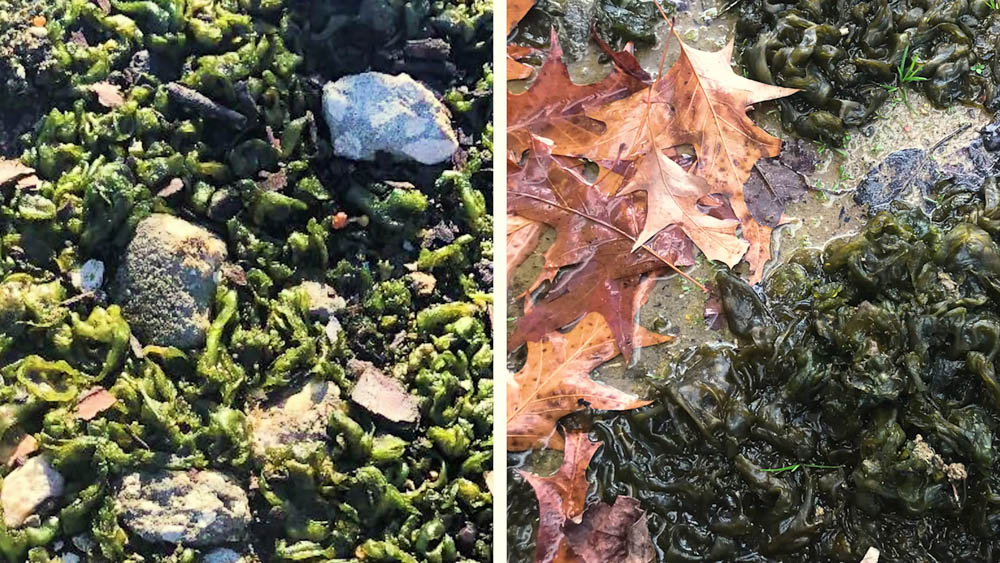Nostoc can get really slippery to walk on, so keep an eye on it in those high traffic scenarios. You don't want people slipping on it, and it definitely needs to be cleaned up when it's growing in those high walkway areas. It may not be as slippery in dry conditions: when the sheath dries out, it will protect the algae under harsh conditions. When it gets hydrated, though, it can bounce right back, and that’s when it really gets quite slippery.