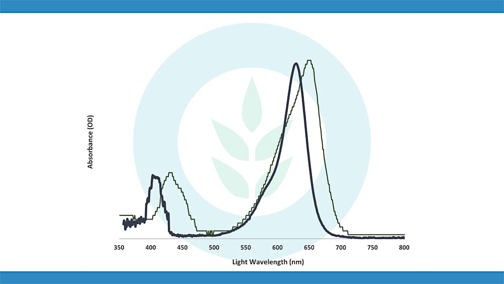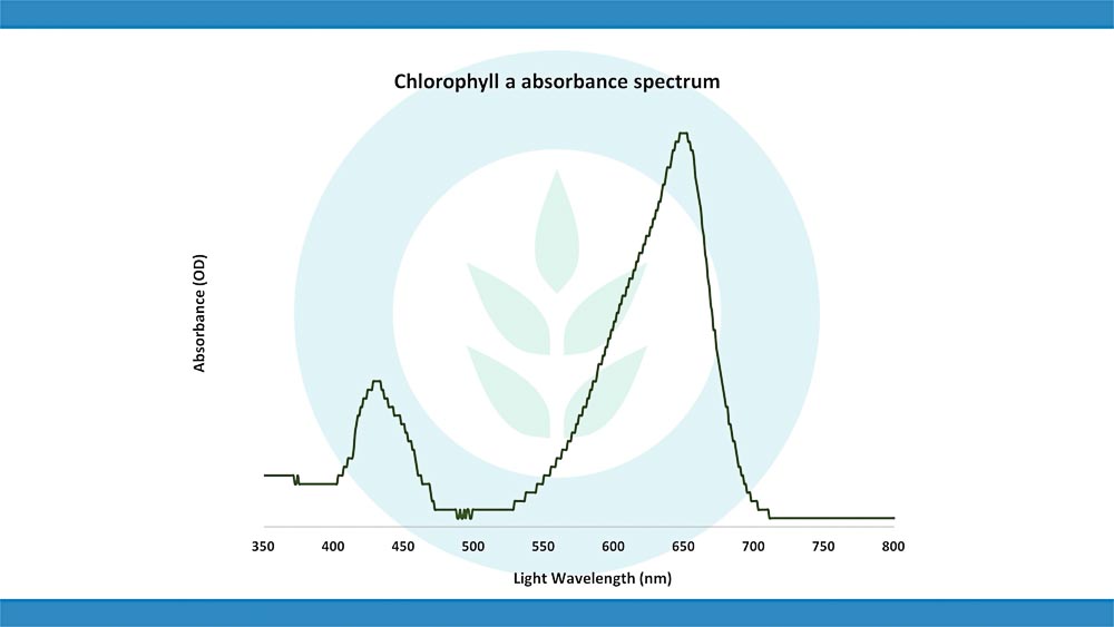 Here's the absorbent spectrum of chlorophyll A... Now, compare that to the absorbent spectrum of the dyes we have in Aquashade.