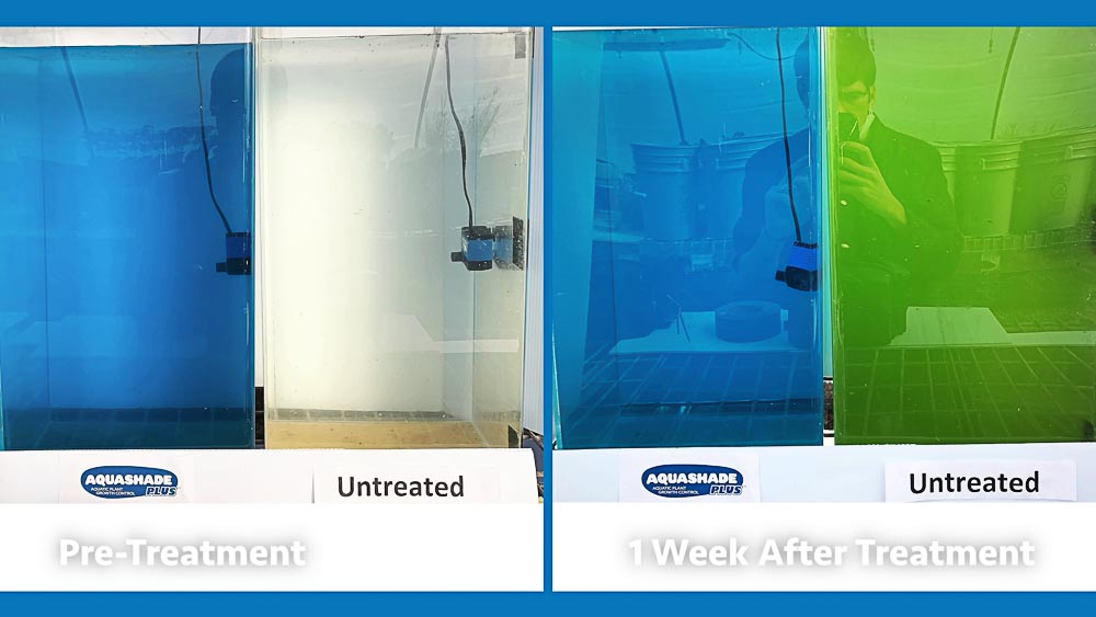 Just like that, we flipped the switch on algae. We took their energy source, and we unplugged them. No longer can those light wavelengths be used to drive the growth of algae, because we block them first with Aquashade.