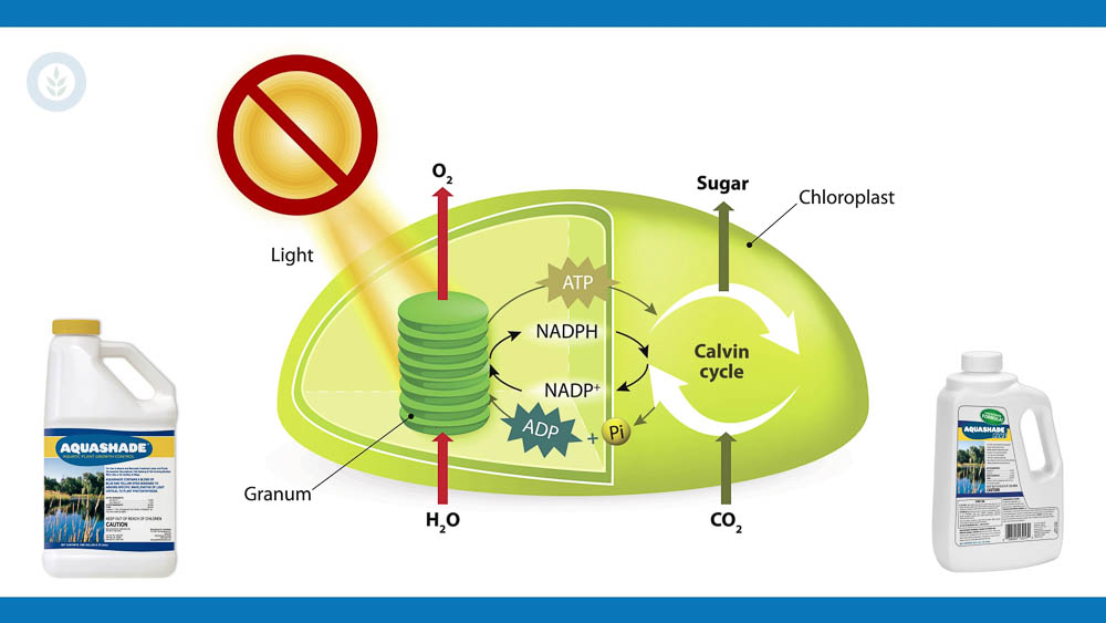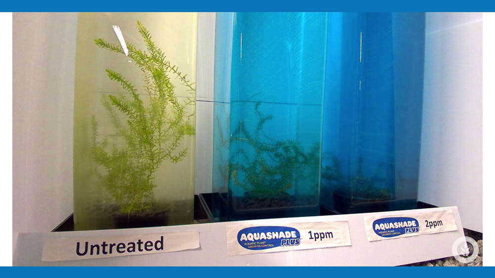 So how do we do that? Well, this is the punny part, if you will. Aquashade. As its name implies, we can strategically shade out the key light wavelengths needed by algae to grow.