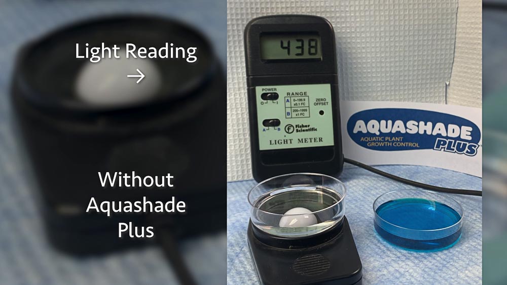 With the right amount of Aquashade in your system, we can drastically decrease the key wavelengths of light that cause algae to grow. This is a critical way to proactively control them for the long term in your pond. It can also be used with other nutrient mitigation technologies. Some algae do have unique adaptations to acquire nutrients, so managing light is an awesome way to attack them and a great part of the one-two punch when you use these products together.