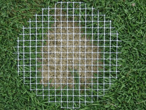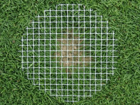 Figure 3. Lateral regrowth of creeping bentgrass following removal of a 4.25" diameter plug and application of 16 oz/A of Cutless 50W (left) vs. 36 fl oz/A Trimmit (right).