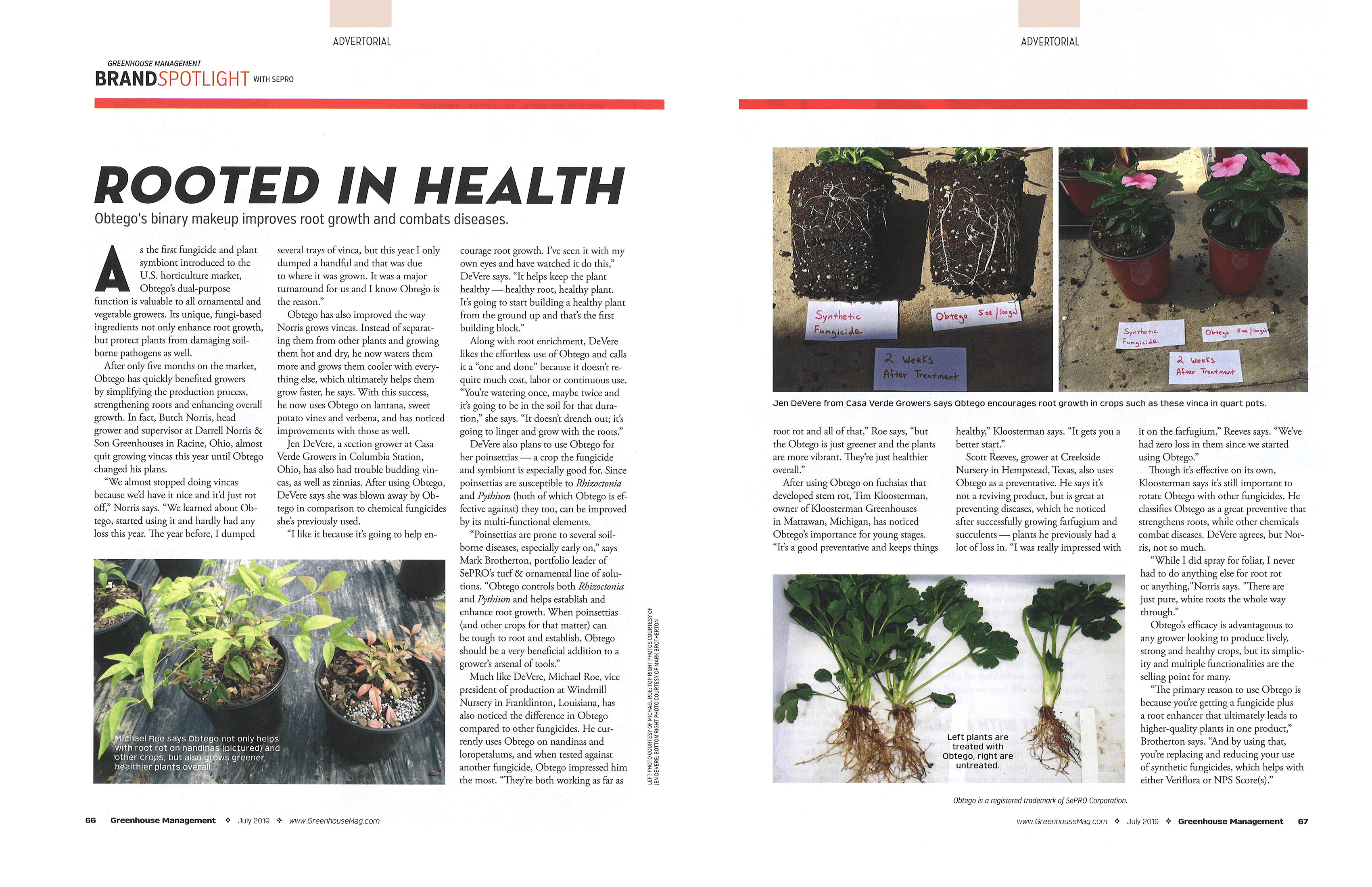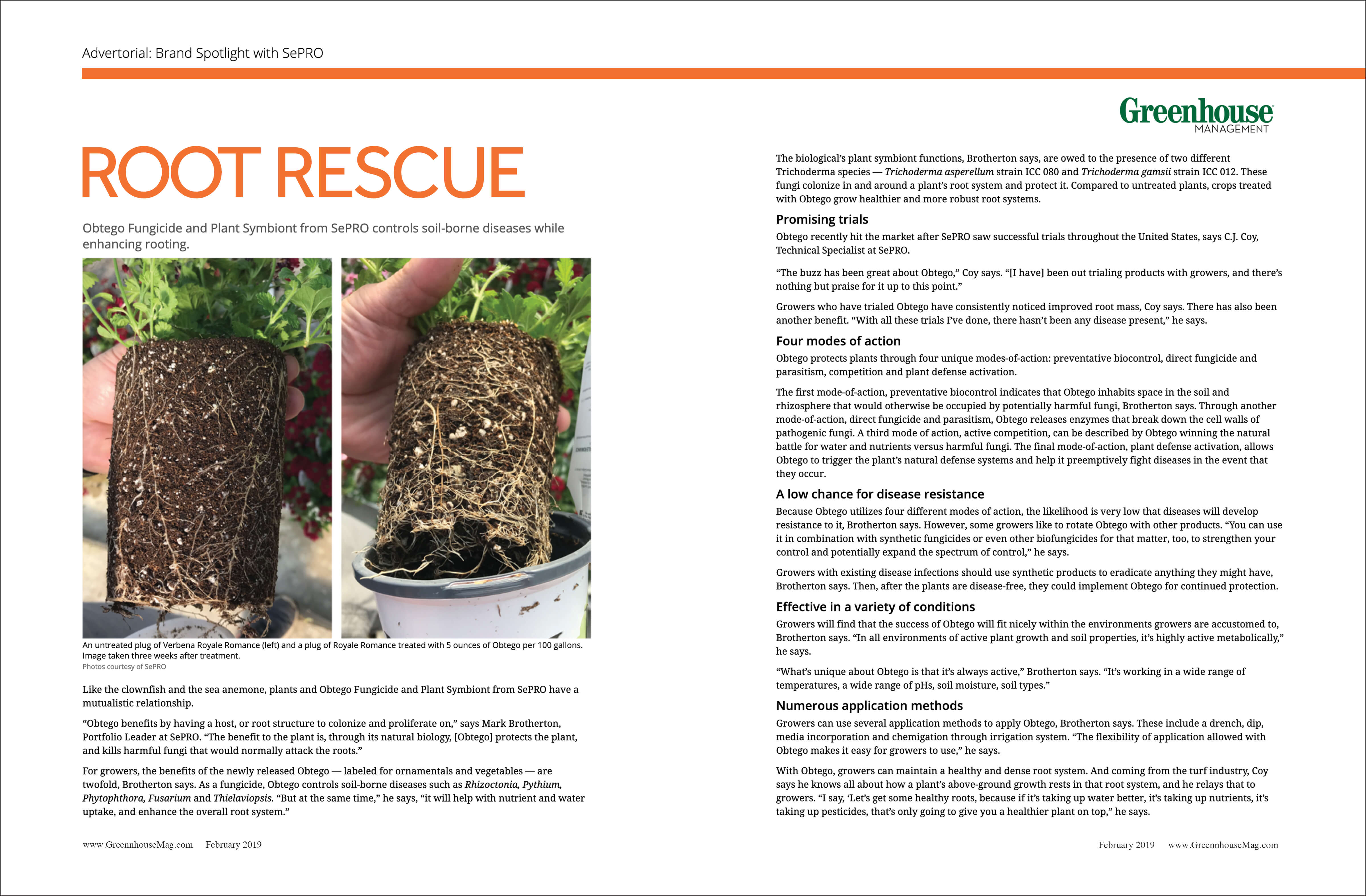 Obtego Fungicide and Plant Symbiont serves as a multi-functional tool for growers by protecting the plant from damaging soil-borne pathogens and enhancing root growth.