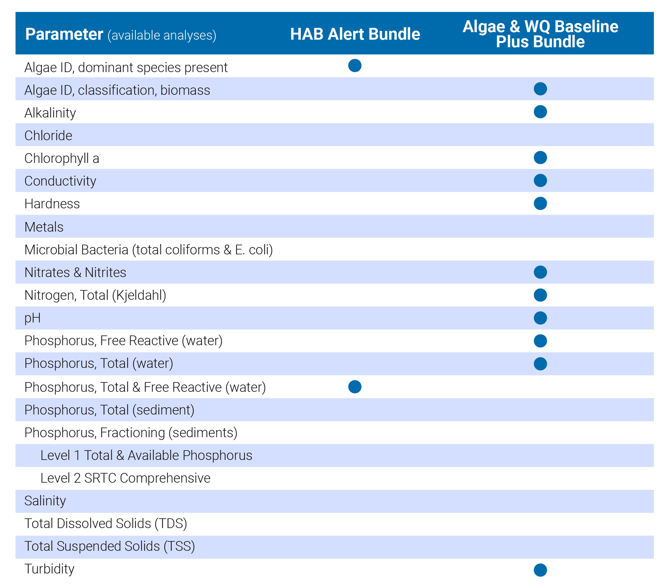 This analysis includes all the services of the Algae and Water Quality Baseline Plus Bundle. In addition, algae and water samples collected from the waterbody will be subjected to a multi-phase bioassay to evaluate site specific response to various algaecides. Data from the bioassay will be utilized to develop a custom treatment prescription for the waterbody.