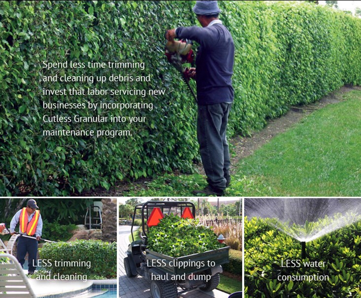 Cutless Granular is a systemic plant growth regulator that slows shoot growth of hedges, shrubs and groundcovers in landscaped areas. Plants treated with Cutless Granular will require less trimming and will have a more compact growth form, improving profitability by reducing labor and fuel costs.