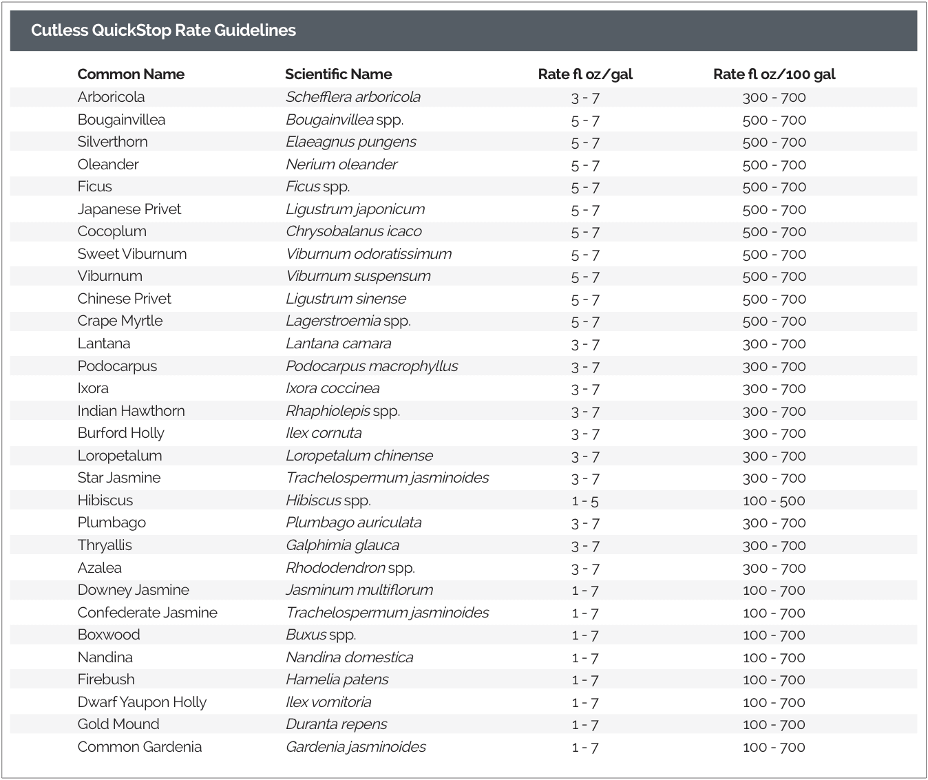 - The rates listed below are guidelines. Plant response to Cutless QuickStop is dependent on species and location.