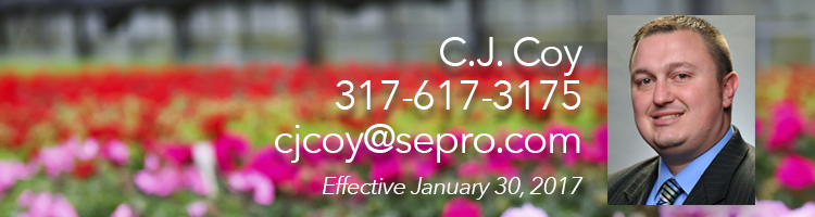 SePRO Corporation is pleased to welcome Mr. C.J. Coy as a Technical Specialist to lead ornamental sales and support in Illinois, Indiana, Iowa, Kentucky, Michigan, Missouri, Ohio, and Wisconsin.