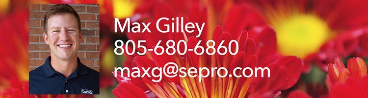 Max is passionate about solving problems when it comes to plant production. “As an agronomist, I love mitigating production issues and working with growers to find the best solutions,” said Max. Scott Shuler, Western Regional Sales Manager, added, “Max had a strong desire to move into a Technical Specialist role so he could interact with growers to help them solve problems. Max will quickly become a valuable resource for SePRO’s nursery and greenhouse customers.”