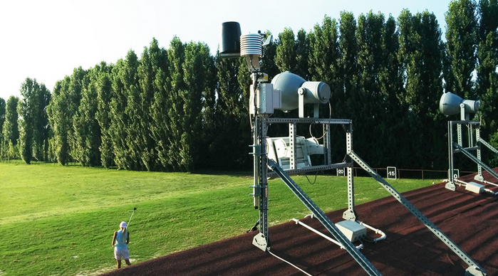The first prototype was installed in summer, 2014, at the Motecchia Golf Club in Padua, Italy, and was able to predict the onset of Dollar Spot on the overseeded Patriot hybrid bermudagrass fairways and bermudagrass and bentgrass greens, supplying accurate data for irrigation throughout the summer.