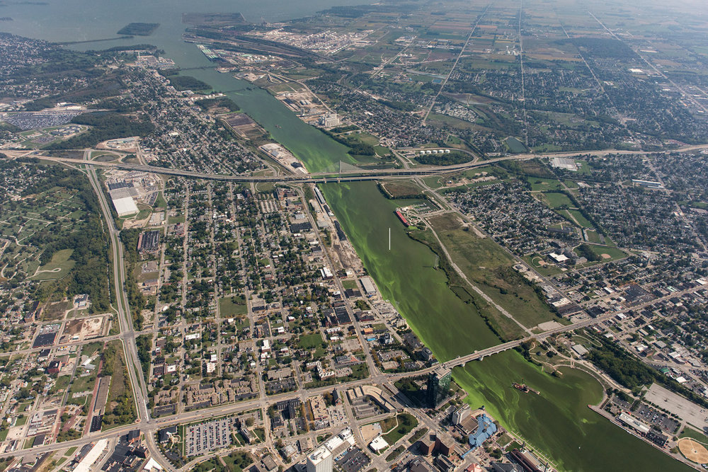 "In the Maumee River, the largest tributary to any of the Great Lakes, green algae was visible last week in an aerial photograph. According to experts, excess nutrients that are transported by the Maumee River can be a good indicator of how severe an algae bloom in the lake will be." Image and text credit: NY Times