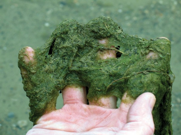 There is one easy way to find out what’s in your water: pick it up. Grab a handful of the pond scum, touch and, it look at it carefully. Then choose which of these descriptions fits best: